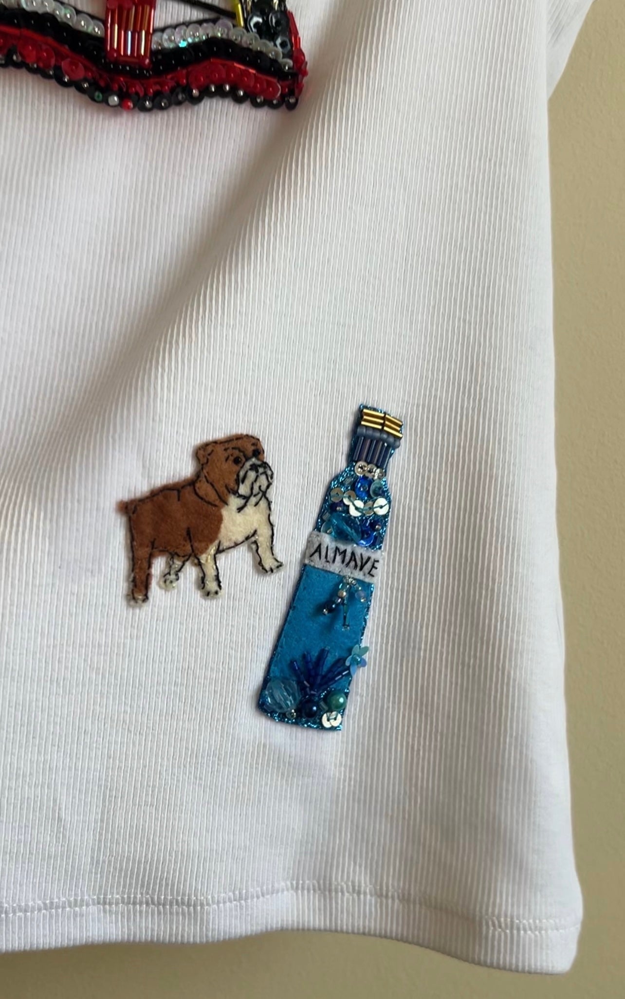 Crafted from a soft white ribbed cotton vest with a flattering scoop neck, it’s finished with intricate beadwork that gives it its signature look - no two MILA pieces are ever the same.